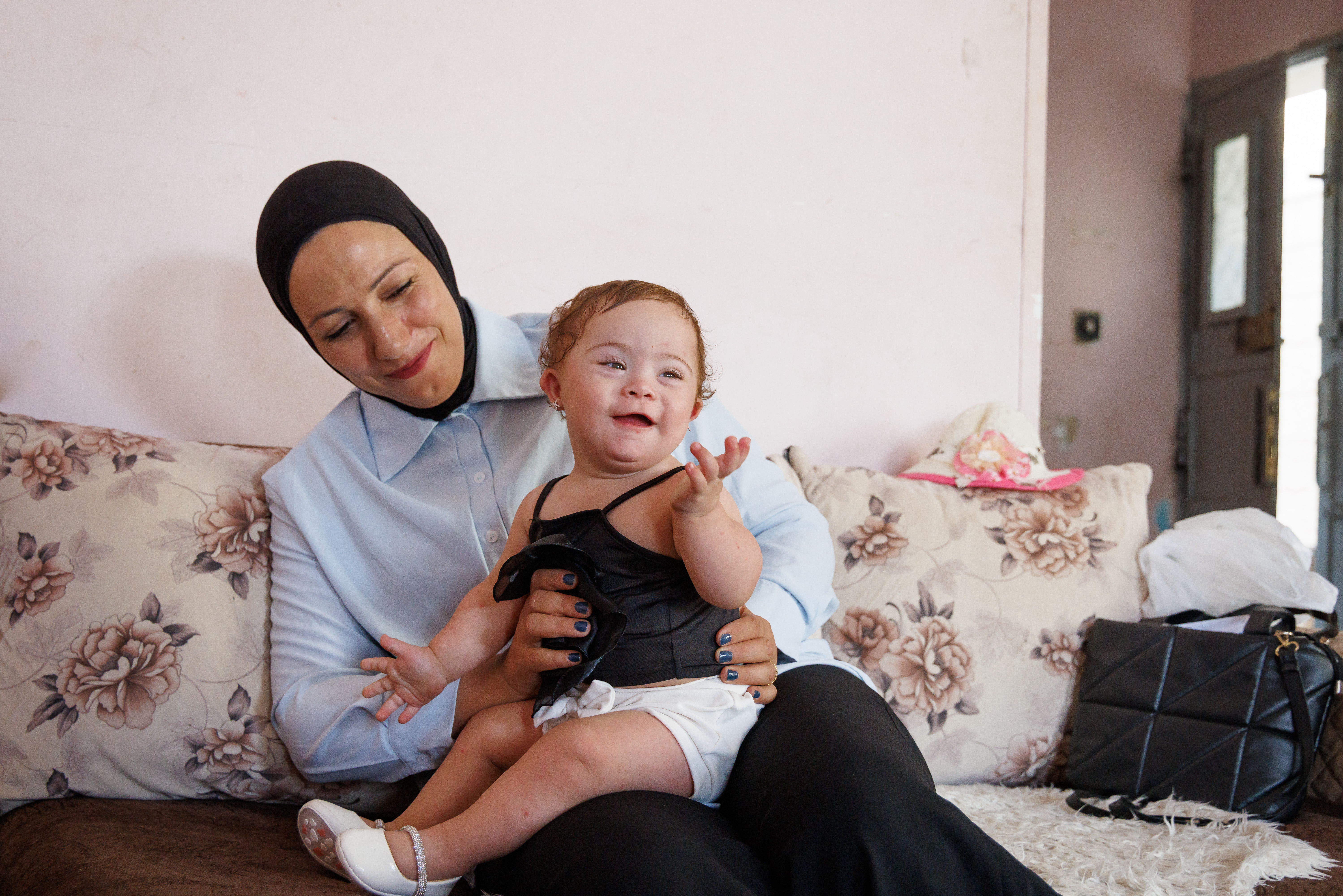 Karmel Odeh lacht viel und hat gut lachen: Das 14 Monate alte Mädchen mit Down-Syndrom wurde in liebevolle Arme geboren. Das und die professionelle medizinische Unterstützung im Caritas Baby Hospital helfen ihr, sich bestmöglich zu entwickeln. Für die gesundheitlichen Herausforderungen, die mit der Gen-Anomalie einhergehen, finden Karmel und ihre Familie im Kinderspital den besten Ansprechpartner.