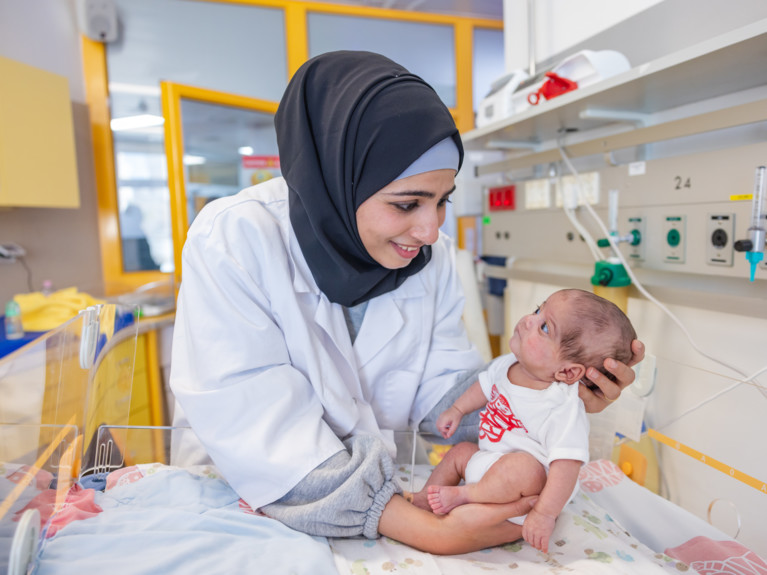 Rückblick auf den 2. November 2023. Der Tag hat sich in die Erinnerung der Zaloums gebrannt. Nach einer gesunden Tochter, zwei Fehlgeburten und im sechsten Monat einer schwierigen Schwangerschaft setzen bei Enas Blutungen ein. Die 28-Jährige spürt, dass etwas nicht in Ordnung ist. Ihr Gynäkologe sieht Anzeichen für eine verfrühte Geburt – zu diesem Zeitpunkt der Schwangerschaft eine sichere Fehlgeburt, so seine Diagnose. Eine Kortisonspritze soll die Lungenreifung des Ungeborenen unterstützen. Dann schickt er Enas nach Hause.