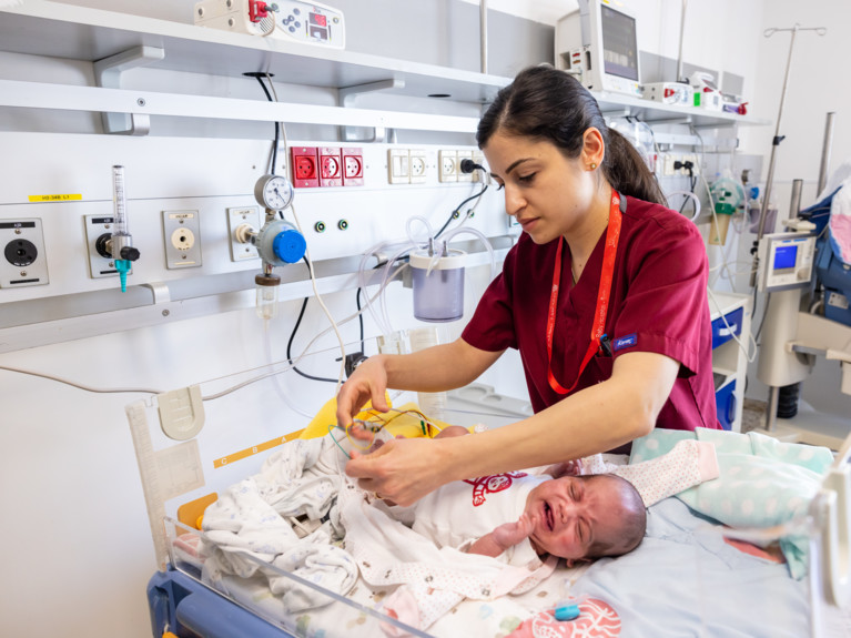 Im Kinderspital beeindruckt die positive Frau das Team. «Ich habe immer weitergelesen. Ich wollte verstehen, wie ich stillen kann, wenn mein Baby im Brutkasten liegt.» Enas bringt die Muttermilch, die sie in sterile Spezialbeutel abgepumpt hat. Und möchte mit Mohammed die Känguru-Methode ausprobieren, bei der Frühgeborene Haut an Haut an ihre Mutter gelegt werden, um ihnen Nähe zu geben. Es ist eine bewährte Methode, welche die Überlebenschancen erhöht und der Entwicklung hilft.