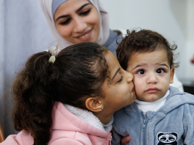 Ob in den Armen seiner Eltern oder beim Küsschen von Schwester Remin: Mohammed Zaloum strahlt vergnügt. Nichts lässt beim Anblick des 15-Monate alten Lockenkopfs aus Hebron auf seinen schwierigen Start ins Leben schliessen. Der kleine Palästinenser wurde mit 650 Gramm in der 25. Schwangerschaftswoche geboren, ohne Überlebenschancen, wie die Ärzte in einem Hebroner Spital beschieden. Doch Mutter Enas gab ihr Kind und die Hoffnung nicht auf. «Heute krabbelt er durch die Wohnung, nichts ist mehr vor ihm sicher.» Stolz und Erleichterung schwingen in ihrer Stimme.
